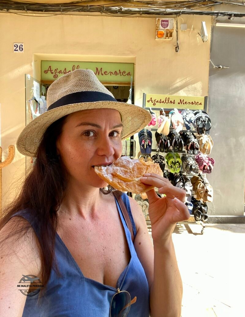 • ENSAIMADAS MENORQUINAS: O “ensaïmades buides”, así son conocidas, además de ser las tradicionales, son vacías y espolvoreadas con azúcar glas. También las puedes encontrar con relleno de chocolate, sobrasada, crema, etc. Uno de los lugares más famosos es Can Pons en Es Mercadal, que ganaron el primer premio a las mejores ensaimadas de la isla.