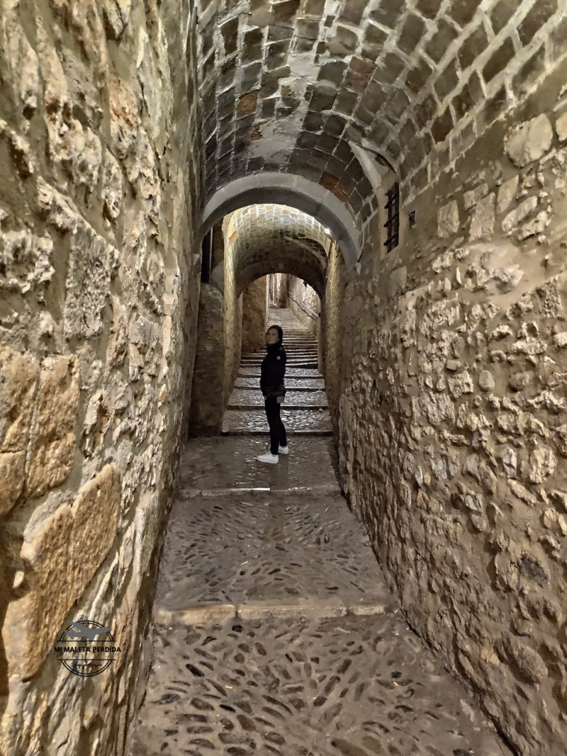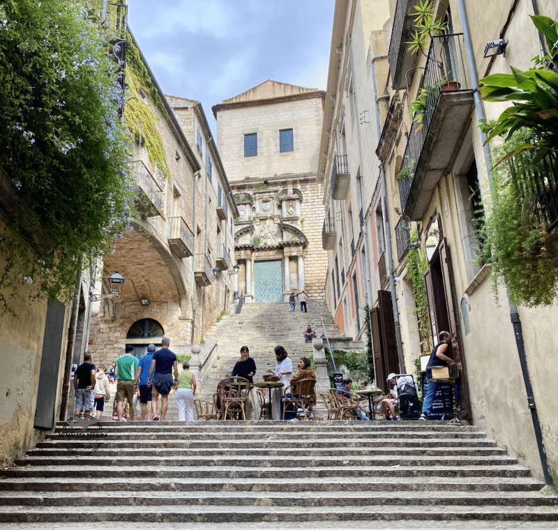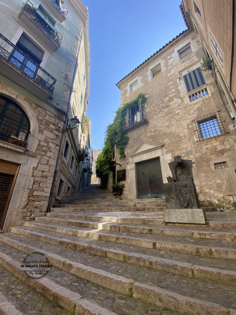Al bajar de las murallas, mi consejo es que pases por la fotogénica Pujada de Sant Domènech, uno de los rincones de Girona donde el tiempo parece detenerse. Un lugar mágico enmarcado por la iglesia de Sant Martí y el Palacio Agullana, con su singular arco oblicuos. Este rincón, también fue uno de los escenarios donde se rodó la serie de Juego de Tronos.