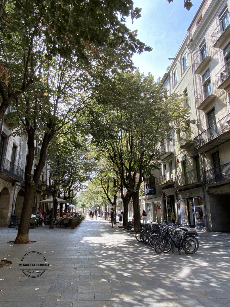 Siguiendo con la ruta de qué ver en Girona en un día, otro de los 12 lugares imprescindibles es La Rambla de la Llibertat. Esta calle con edificios modernistas donde albergaba un antiguo mercado, es un lugar ideal para tomar un pequeño descanso en alguna de sus terrazas, aunque son muy turísticas, pero para tomar algo está bien. Uno de los puntos más destacados son sus arcos que esconden varias leyendas y un mapa antiguo de París en el techo de las bóvedas, que fue pintado por una antigua mercería-perfumería en el siglo XIX, que a día de hoy ya no existe.
