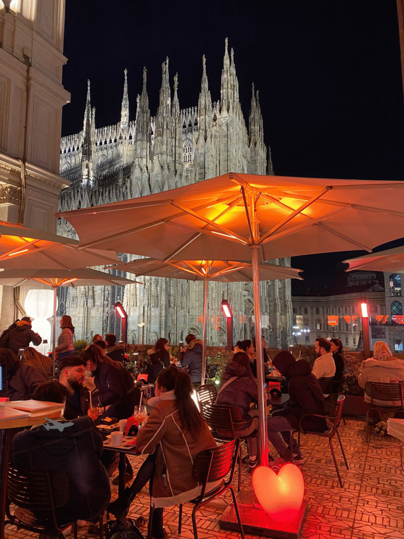 🍸Extra Tip: Si te queda tiempo, acércate a la Piazza del Duomo y tómate un Aperol Spritz en la Terraza Aperol con unas vistas increíbles al Duomo. Aunque los precios son un poco altos, con el cóctel te traen un aperitivo muy completo.