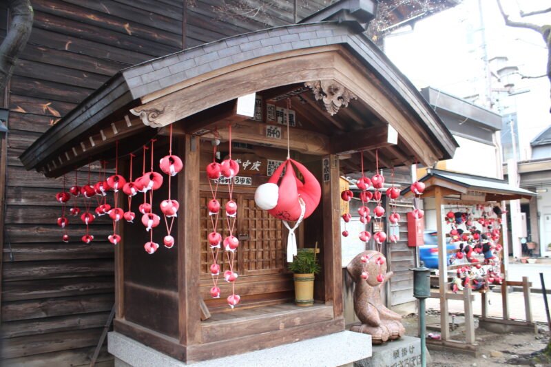 También hay pequeñas tiendas y cafeterías cercanas. No te marches sin comprar un saru-bobo, el amuleto e icono de la región. El saru-bobo es una muñeca de color rojo con los brazos y piernas puntiagudas